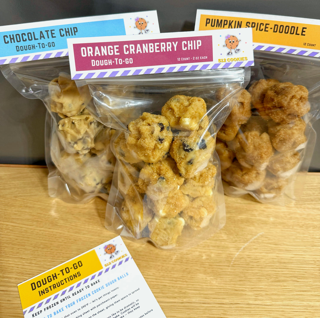 Take our ooey-gooey NY-style cookies home and bake them fresh whenever your sweet tooth calls! Dough To Go comes with 12 frozen cookie dough balls (2 oz each), ready to pop in the oven for warm, bakery-style cookies straight from your kitchen.