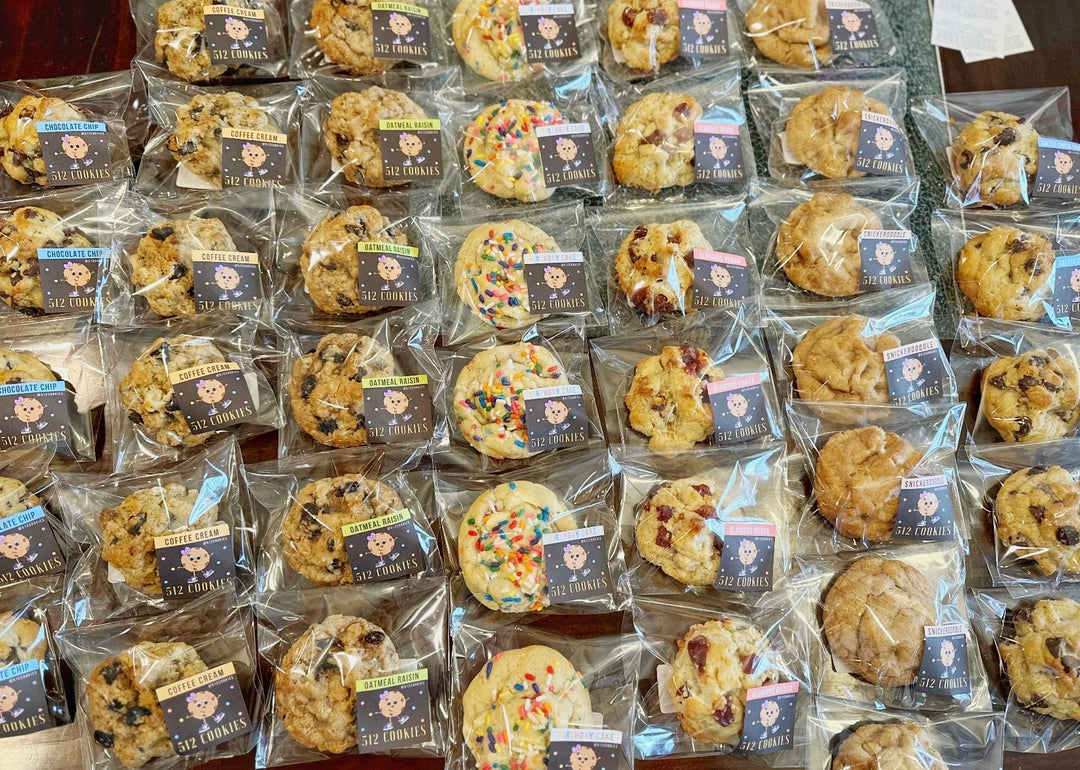 Flavors are subject to change based on season and ingredient availability. Cookies may contain or have been exposed to: dairy, eggs, tree nuts, peanuts, soy, wheat / gluten. 512 Cookies is not liable for any allergic reaction that may occur from touching or consuming these products.