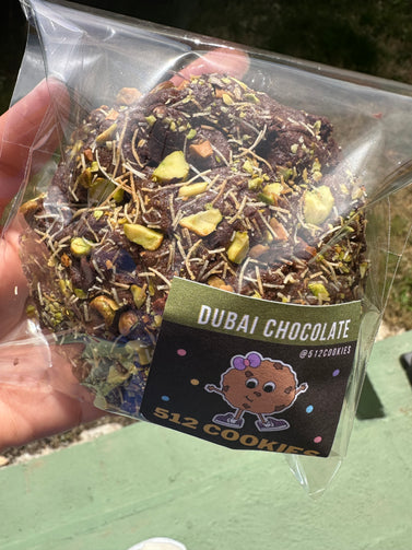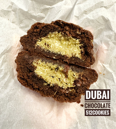 π« Dubai Chocolate Cookie β Double chocolate dough with a dreamy kataifi, pistachio, and tahini filling.
