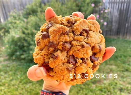 Ingredients: Organic Flour, Butter, Chocolate chips, Sugar, Organic Brown sugar, Organic eggs, Orange zest, Baking powder, Homemade vanilla extract, Corn starch, Baking soda, Himalayan pink salt.